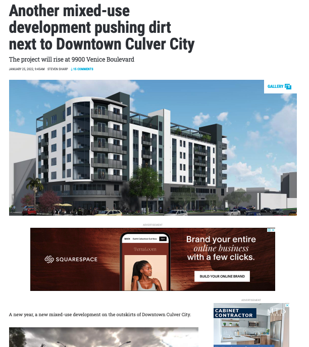 Another mixed-use development pushing dirt next to Downtown Culver City