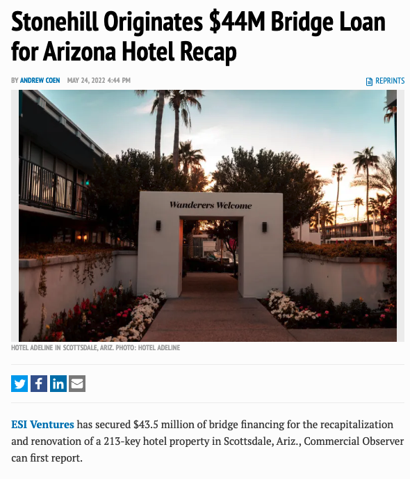 Stonehill Originates $44M Bridge Loan for Arizona Hotel Recap